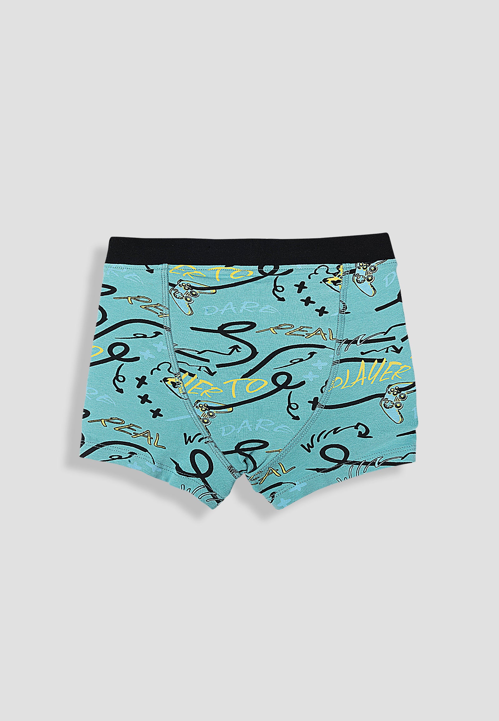 TRESNOVA Cotton Anti-microbial Finish & Smart Waistband Technology Game Printed Soft Boxer Briefs Pack of 3 -Tealblue Offwhite & Navyblue