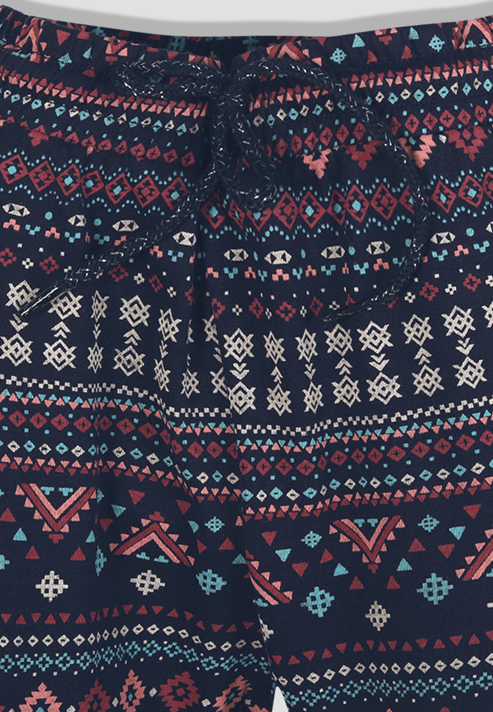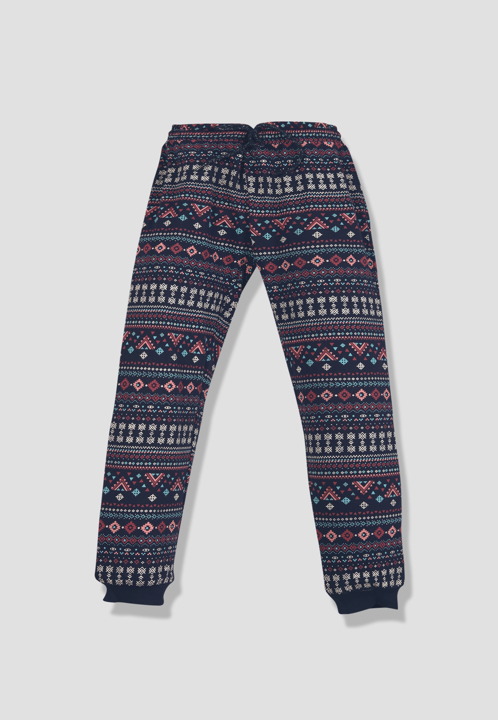 Tresnova Cotton Knit Full Sleeves Antimicrobial Finish Aztec Printed Coordinating T-shirt And Joggers Set-Navyblue