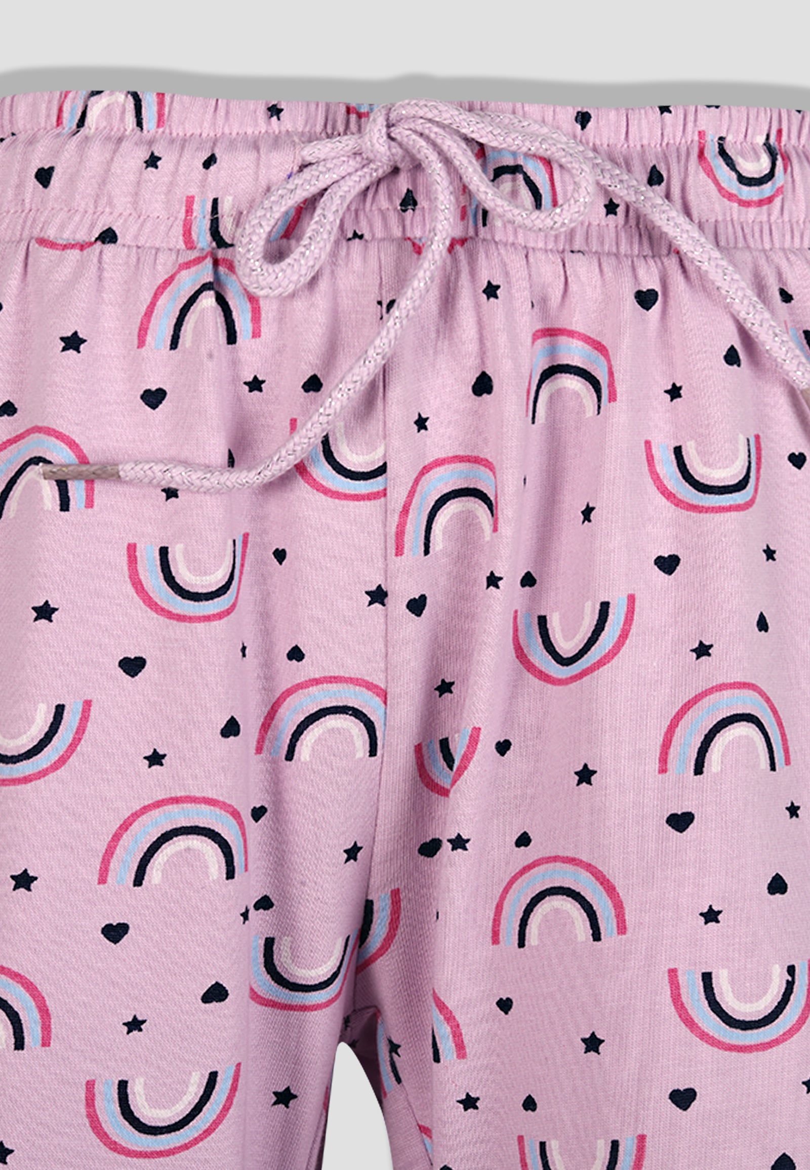 Tresnova Cotton Knit Full Sleeves Antimicrobial Finish Rainbow Printed Coordinating T-shirt And Joggers Set-Purple