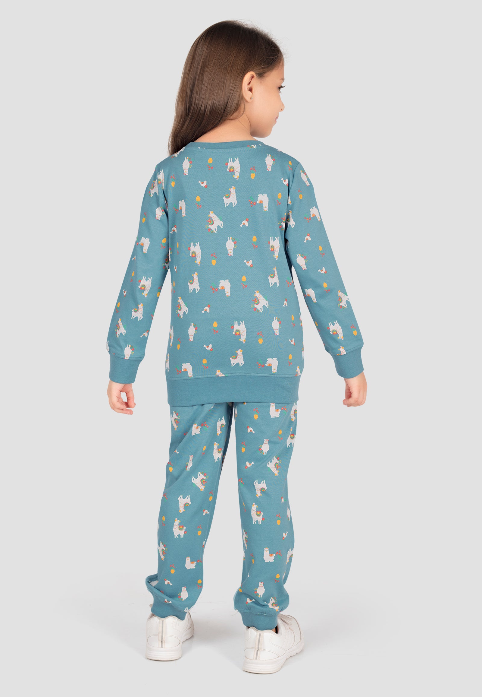 Tresnova Cotton Knit Full Sleeves Antimicrobial Finish Animal Printed Coordinating T-shirt And Joggers Set-Tealblue
