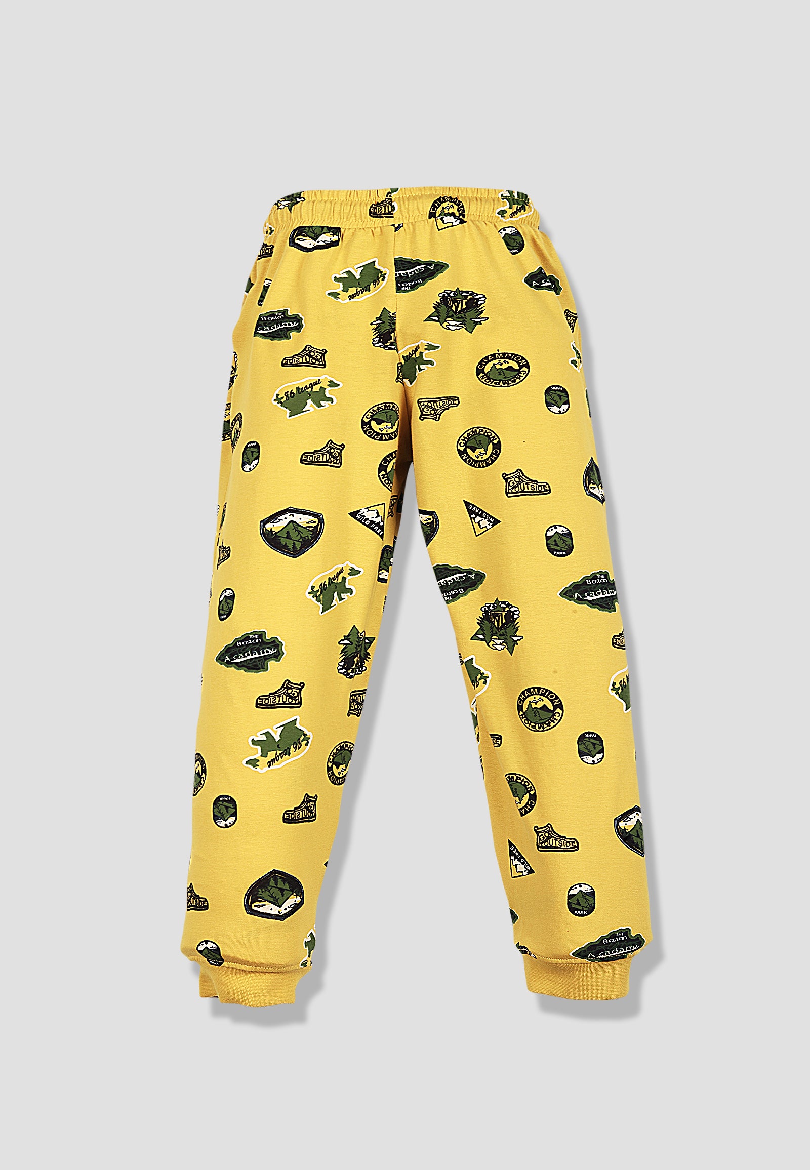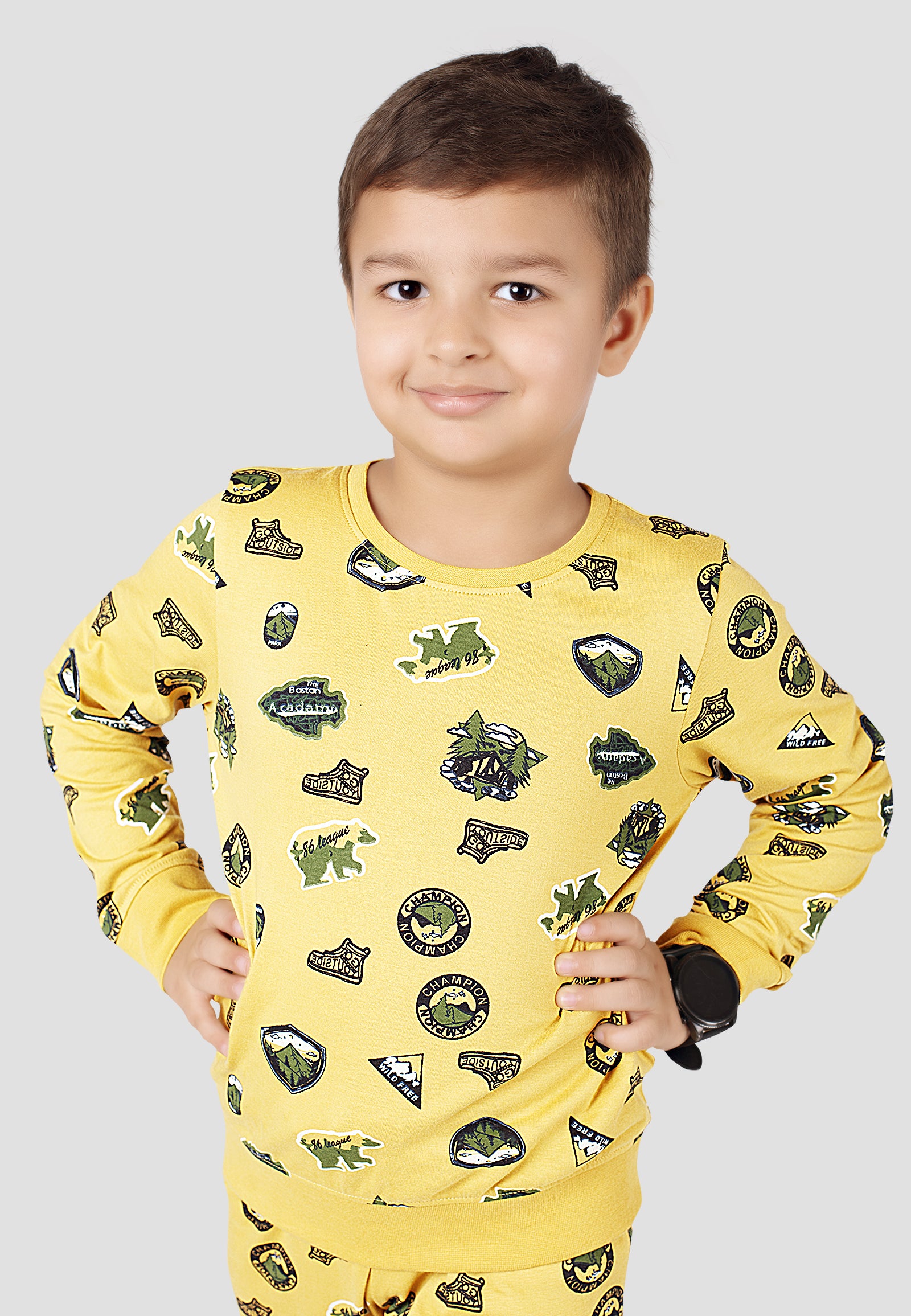 Tresnova Cotton Knit Full Sleeves Antimicrobial Finish Jungle Printed Coordinating T-shirt And Joggers Set-Yellow