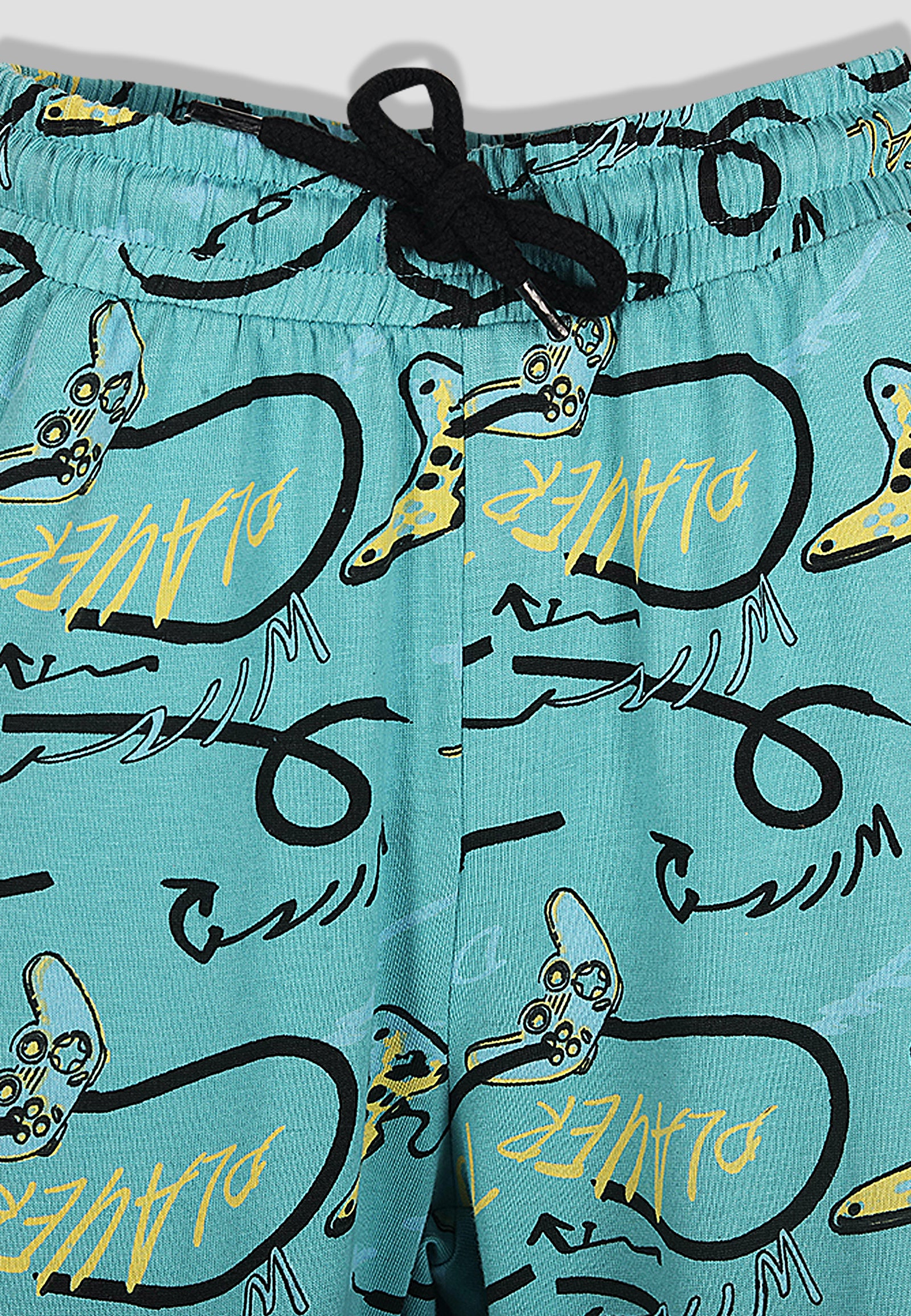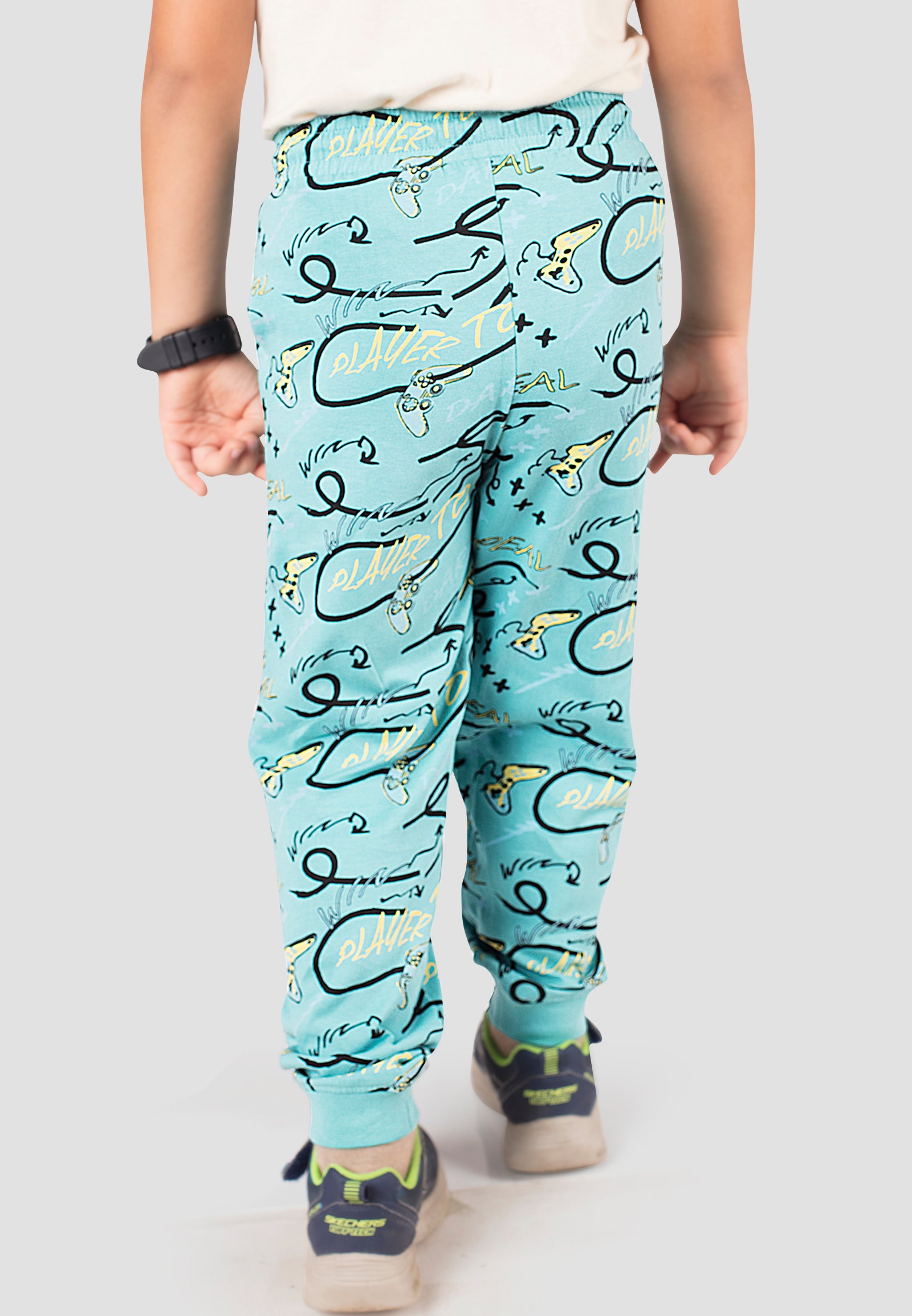 Tresnova Cotton Knit Full Sleeves Antimicrobial Finish Game Printed Jogger Track Pants ( Pack of 2)-Tealblue, Black