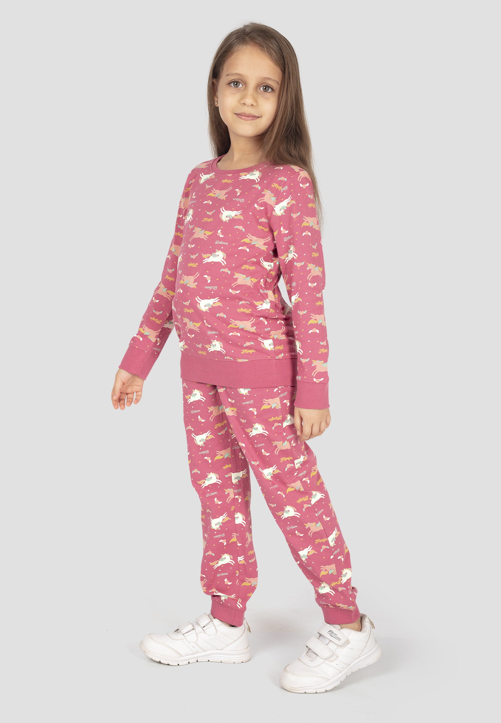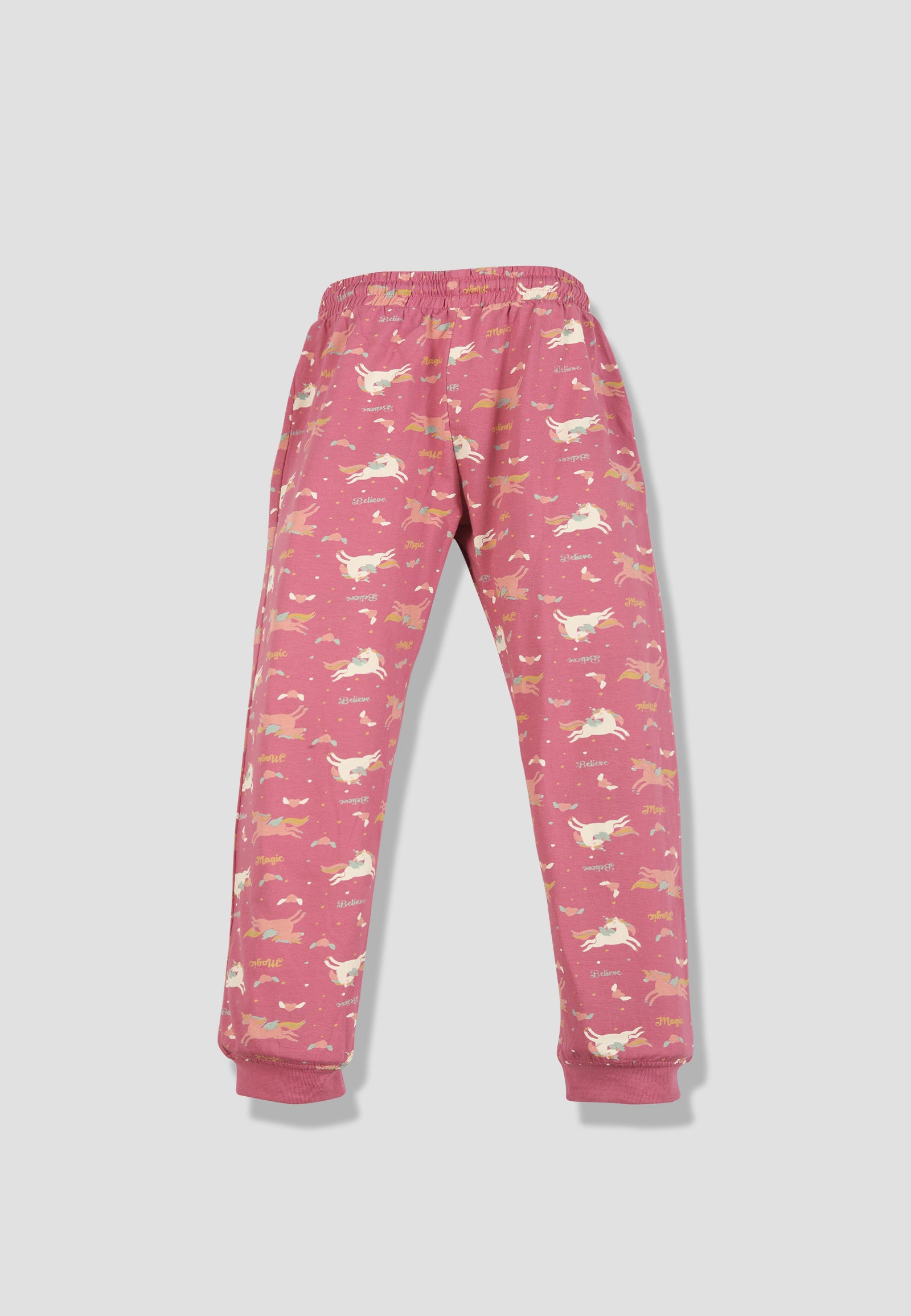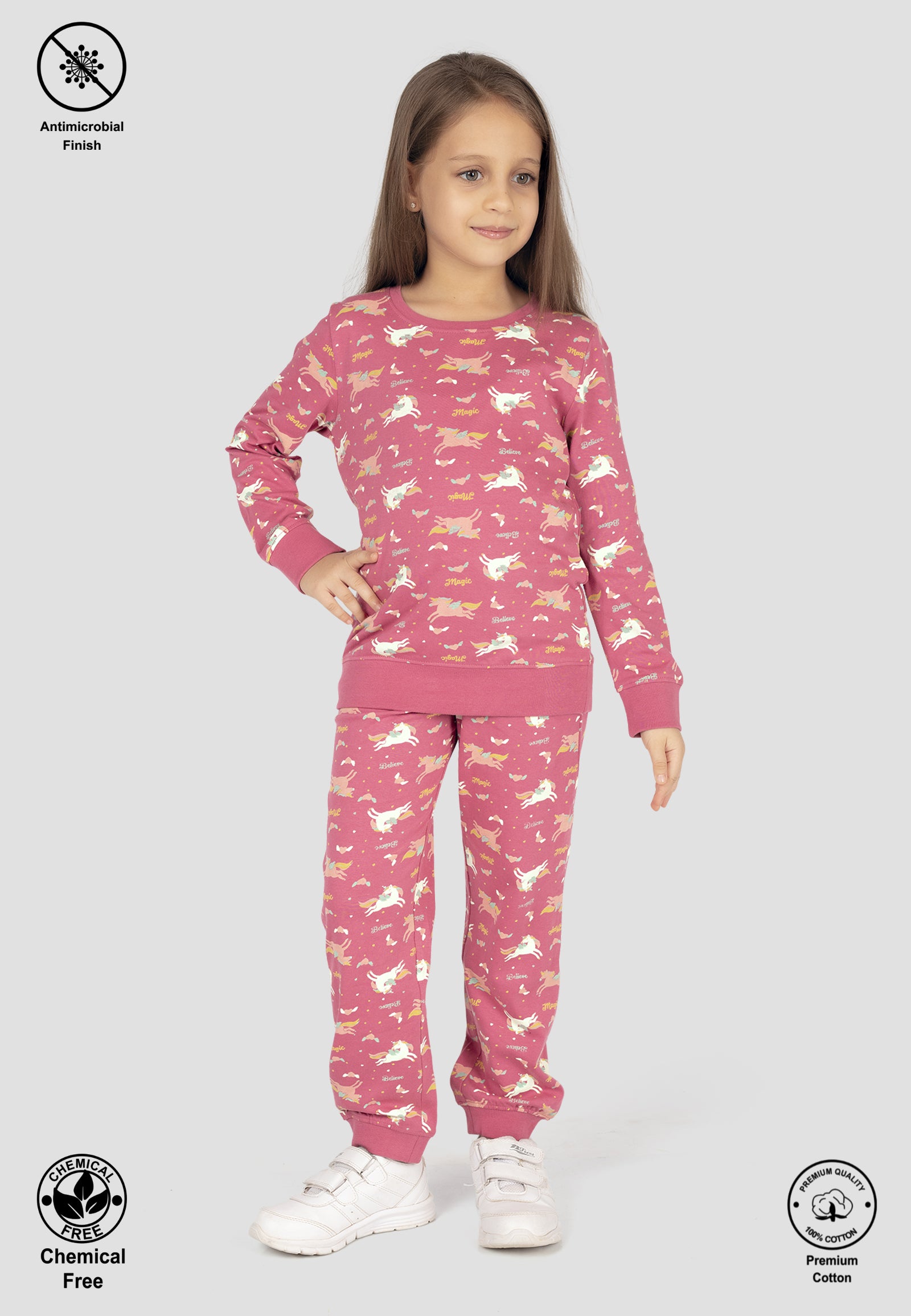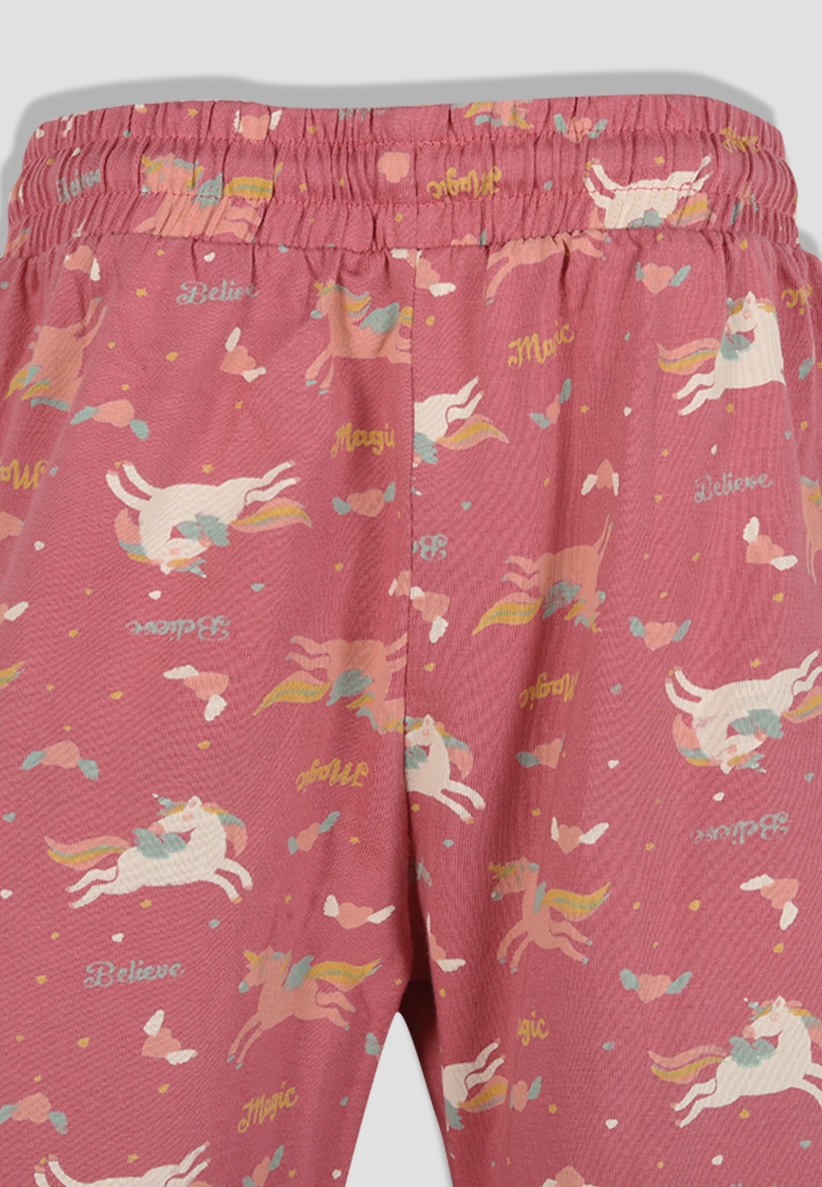 Tresnova Cotton Knit Full Sleeves Antimicrobial Finish Unicorn Printed Coordinating T-shirt And Joggers Set-Rosepink