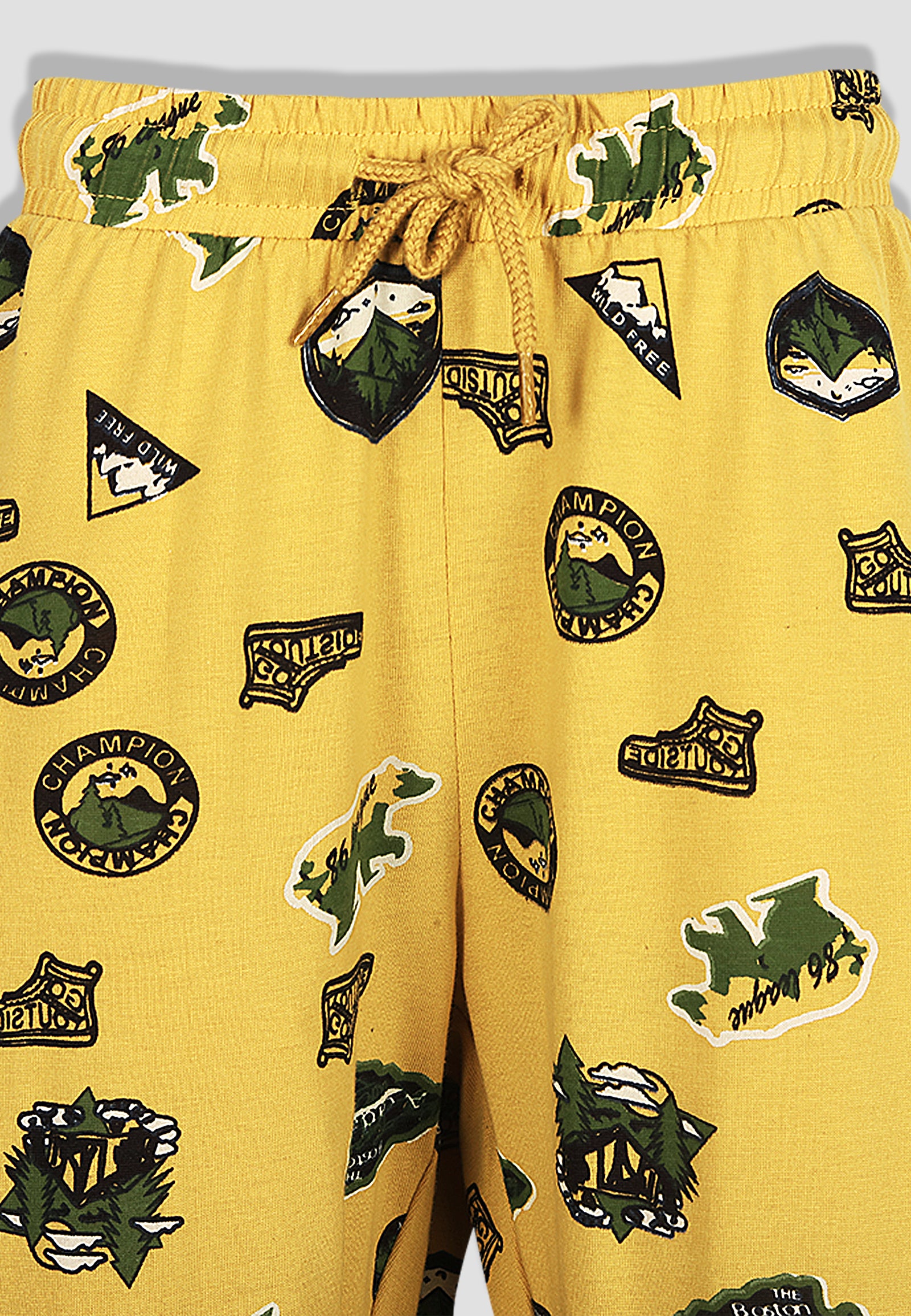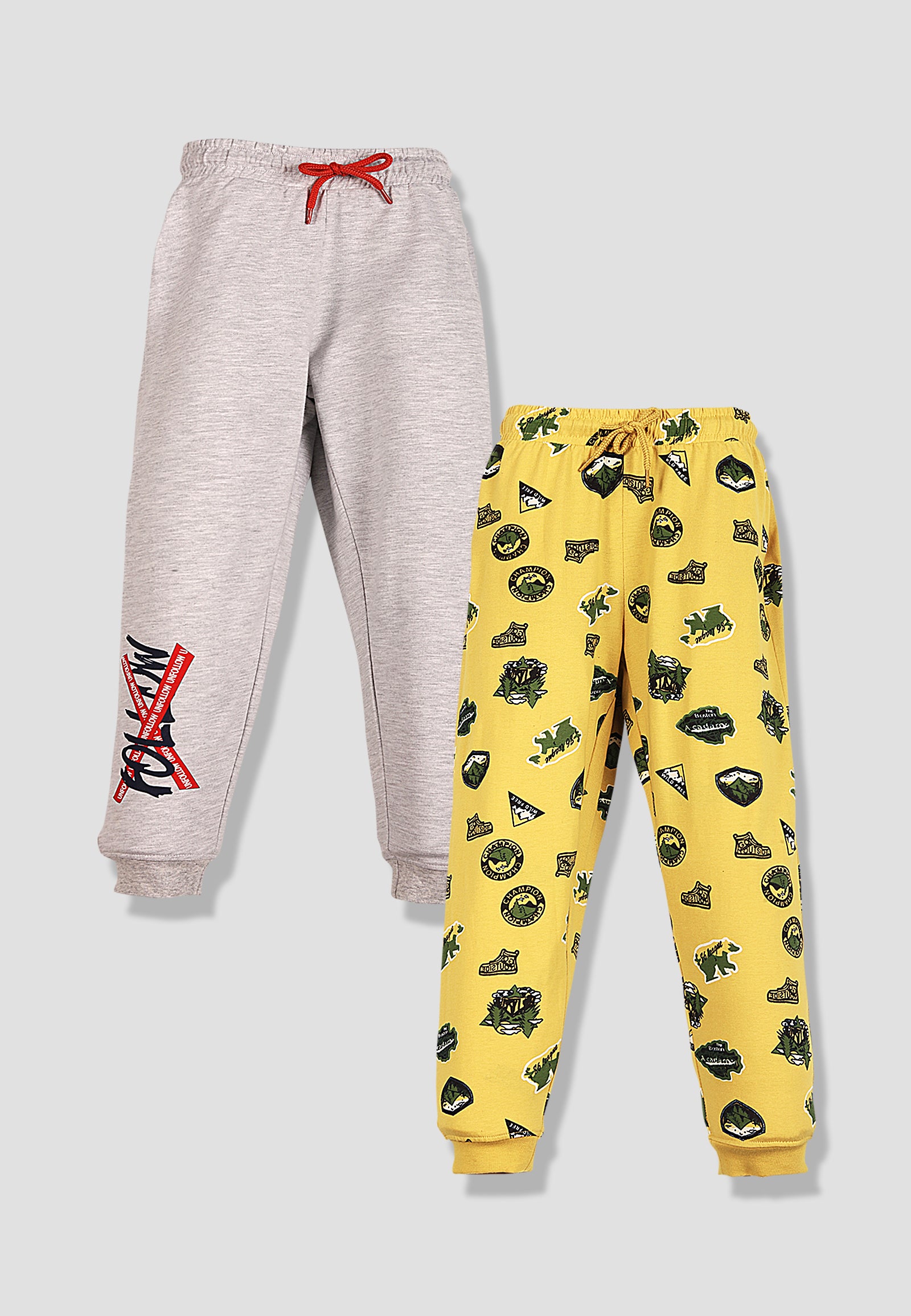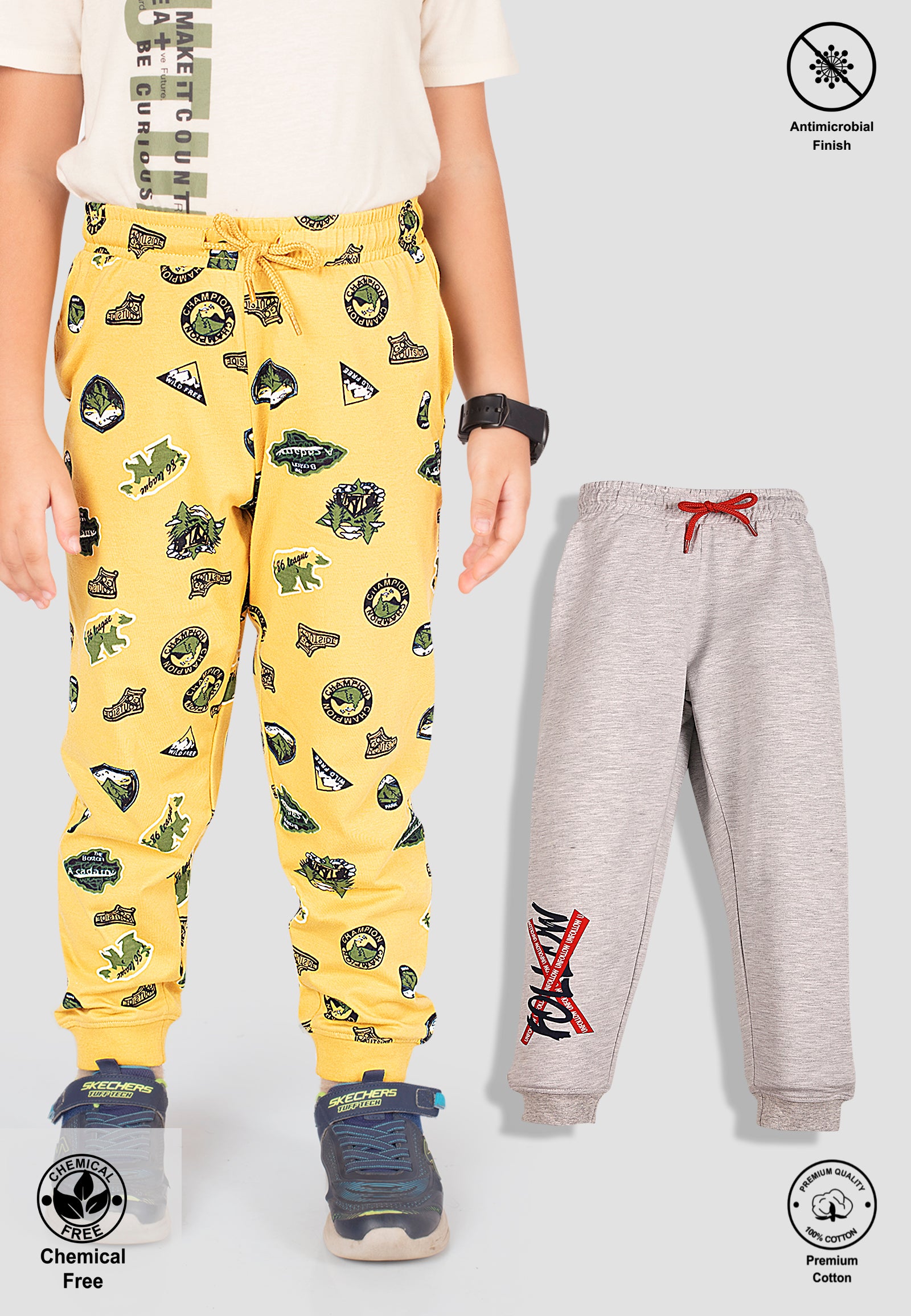 Tresnova Cotton Knit Full Sleeves Antimicrobial Finish Jungle Printed Jogger Track Pants ( Pack of 2)-Yellow, Grey