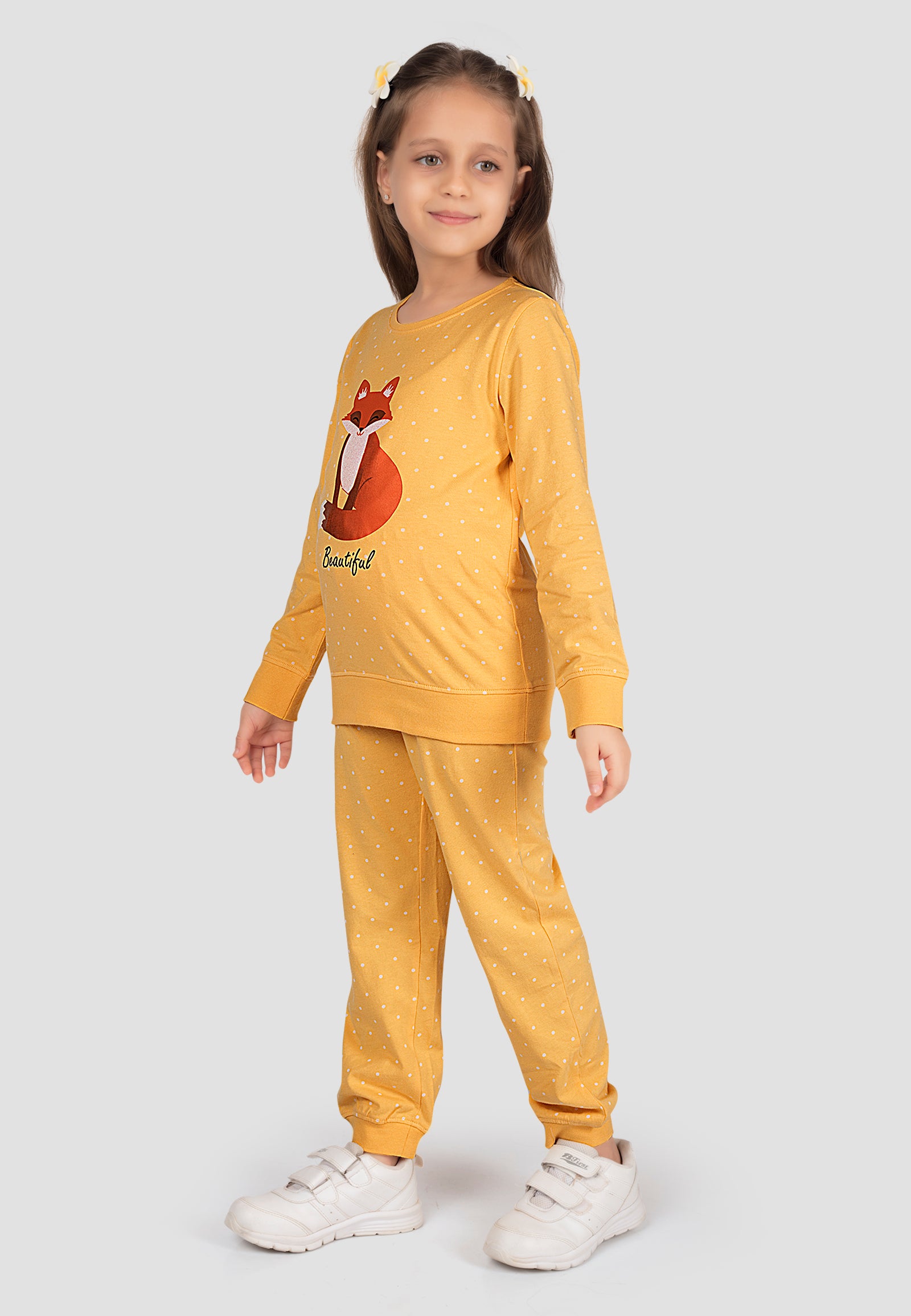 Tresnova Cotton Knit Full Sleeves Antimicrobial Finish Fox Printed Coordinating T-shirt And Joggers Set-Yellow