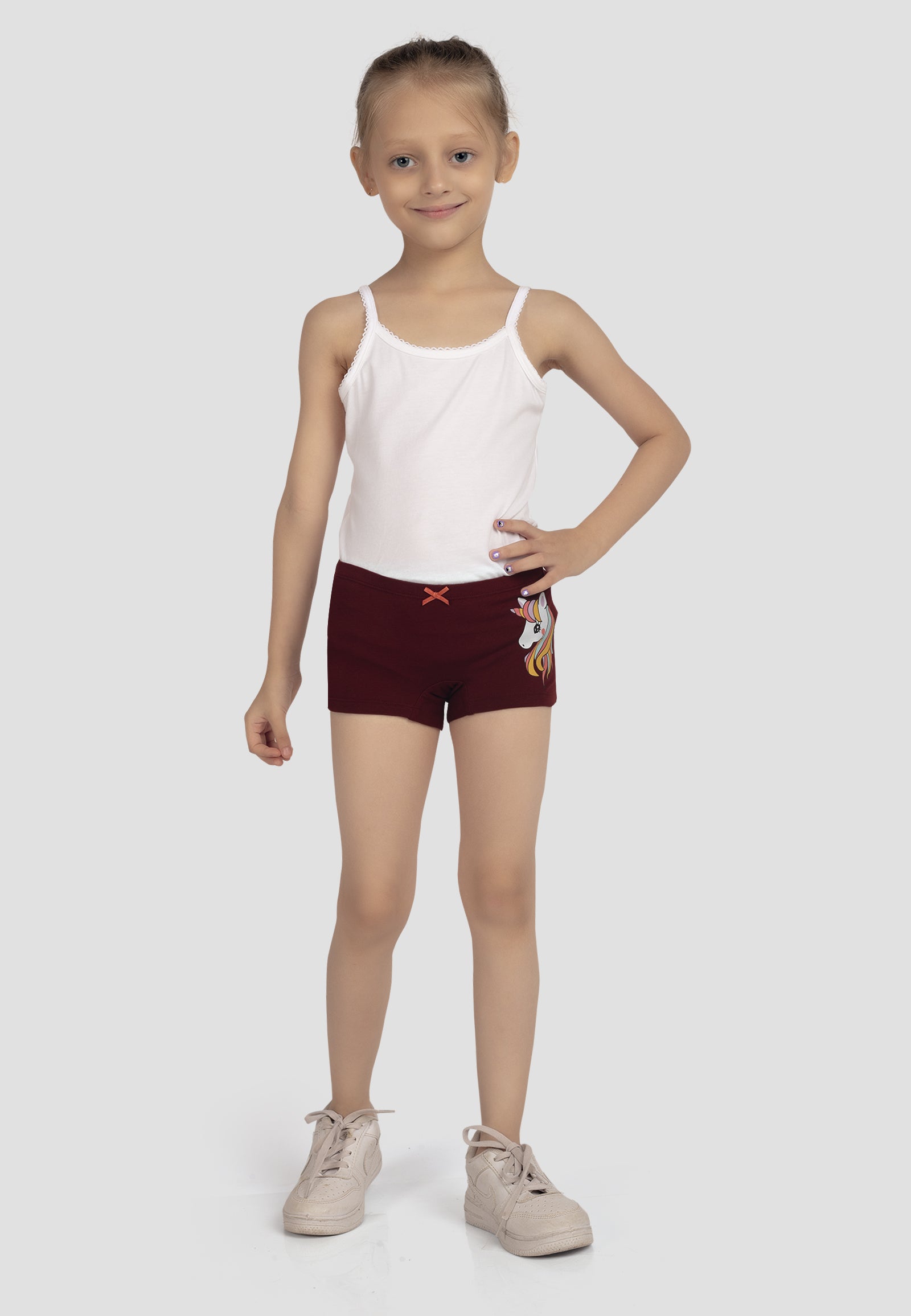 TRESNOVA Cotton Lycra Anti-microbial Finish & Smart Waistband Technology Unicorn Printed Soft Boxer Panties Pack of 3 -Burgundy Yellow & Green
